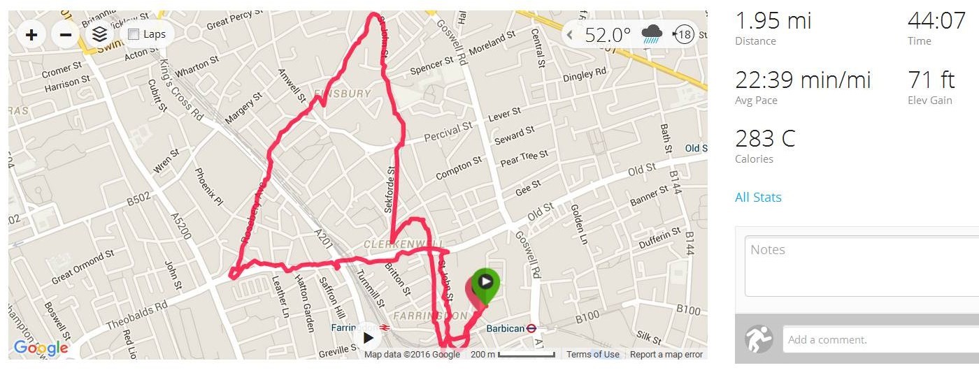 I went for a walk this evening (see the red track below). I’ll provide a signed photo to the first person who can state where I am and why I am visiting this city. Good luck!
